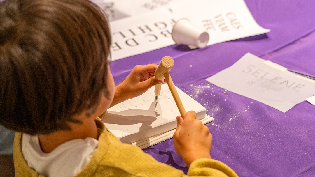Non potendo raccontare gli stand, uno ad uno, come vorremmo, diremo solo di alcune di queste isole del sapere: quelle che più hanno attratto la curiosità dei giovani. Come il laboratorio didattico Pietre dell’antica Roma, allestito nella nuova Aula studio di Uniurb in Vittorio Veneto. Qui, sui grandi tavoli bianchi, bambine e bambini hanno incontrato la storia. L’hanno proprio sentita tra le mani nei segni incisi su pietra secoli fa che hanno provato a riprodurre in epigrafi nuove, dal tratto incerto – diciamo pure storto – ma sempre mosse da un incontenibile stupore.